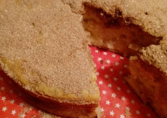 - Den Kuchen aus dem Ofen nehmen, leicht abkühlen lassen, dann aus der Form lösen, zum Auskühlen auf ein Kuchengitter setzen und großzügig mit einer Zimt-Zucker-Mischung bestreuen..