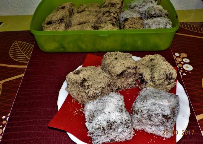 - Walnuss-Raspel in eine Schüssel geben, die Würfel von allen Seiten in die Glasur tauchen und mit Walnuss-Raspel panieren. Auf einem Gitter trocknen lassen. 24 Std. im Kühlschrank aufbewahren (damit die Glasur fest wird)..